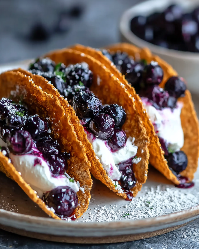 There are many reasons to try Blueberry Cheesecake Tacos. First, they are incredibly easy to make, even for beginners. The recipe requires simple ingredients that you might already have in your kitchen. Second, they are visually appealing, making them a great choice for parties or family gatherings. The vibrant blueberries on top add a pop of color that is sure to impress your guests.
