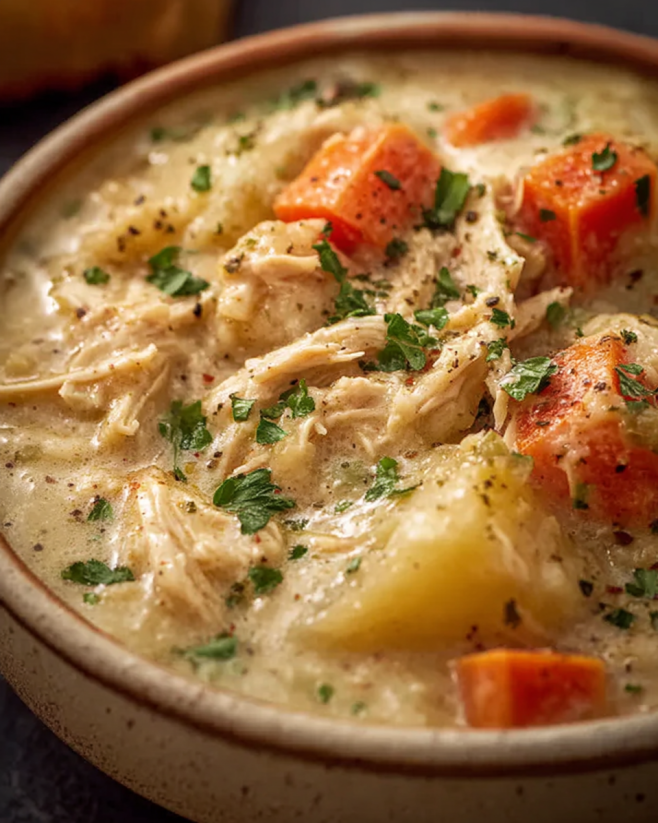 Creamy High-Protein Chicken Pot Pie Soup