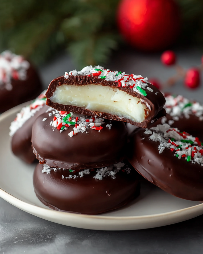 Delightful confections combining a cool, minty filling with a rich chocolate coating, perfect for any occasion.