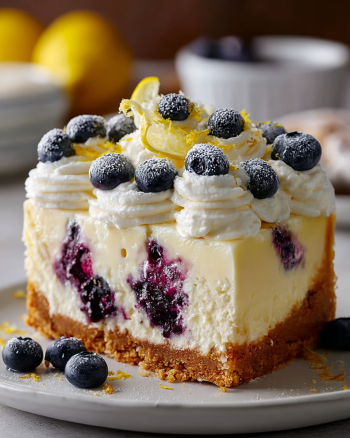 • Serve with Whipped Cream: For an extra indulgent touch, serve each slice with a dollop of freshly whipped cream. This adds a creamy texture that pairs perfectly with the tartness of the lemon and the sweetness of the blueberries.