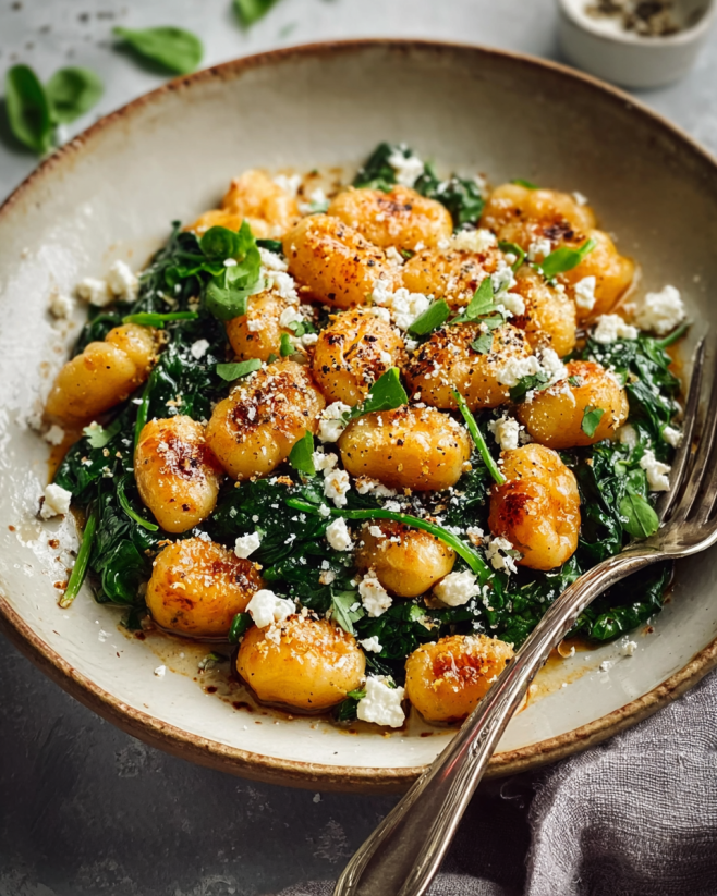 Crispy Gnocchi with Spinach and Feta Recipe is easy!
