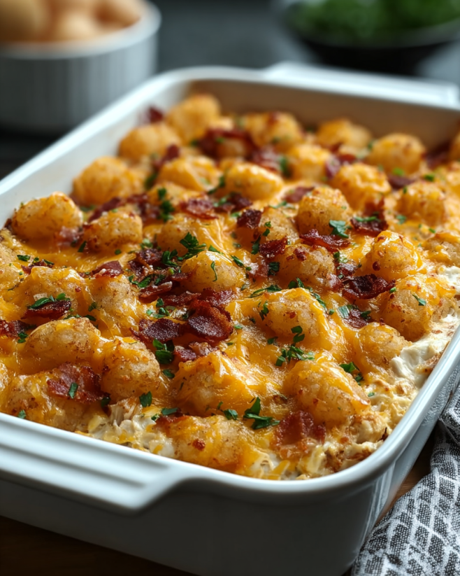 Chicken Bacon Ranch Tater Tot Casserole is a must-try!