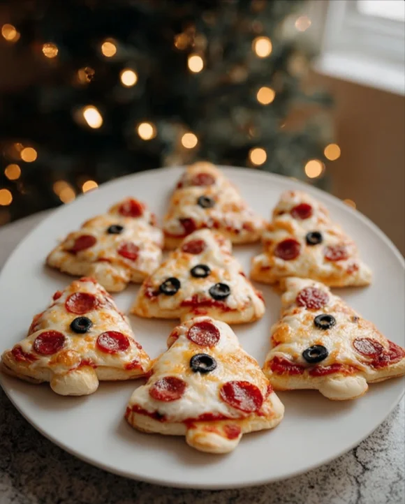 Cheesy Christmas Tree Mini Pizzas are festive delights!